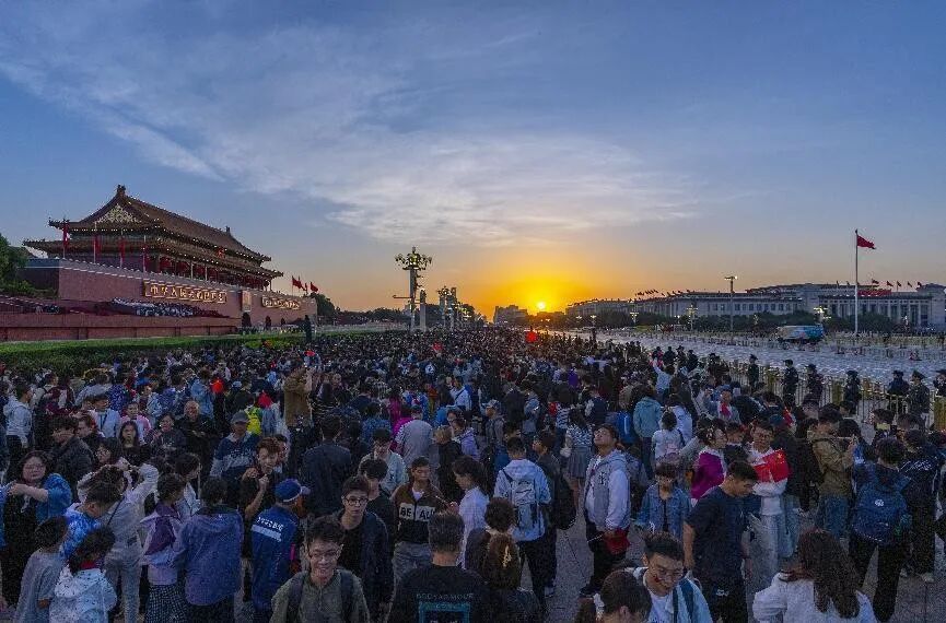 2025年10月1日,天安门广场迎来国庆节第一缕阳光。中新社记者 张炜 摄