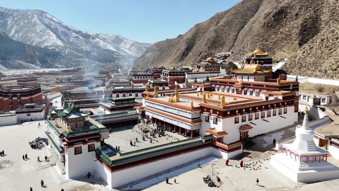 2025年2月28日,航拍的甘肃甘南拉卜楞寺。中新社记者 九美旦增 摄