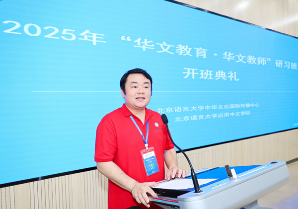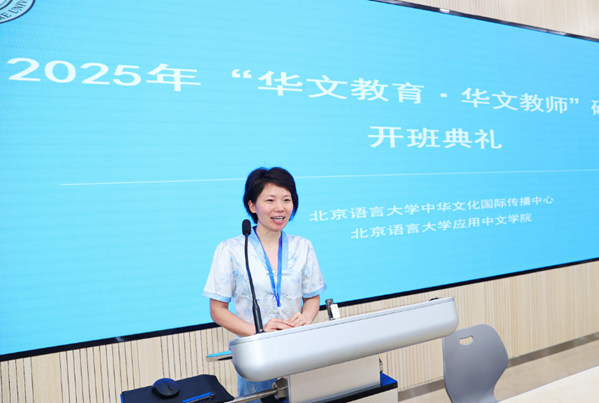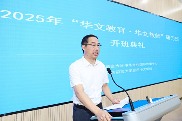 8月11日,由华文教育发展中心主办、北京语言大学承办的2025年“华文教育·华文教师”研习班隆重开班。来自美国、德国、英国、荷兰、日本、缅甸、泰国等22个国家的80名学员参加了开班仪式。北京语言大学黄益方副校长为开班致辞,北京语言大学党外知识分子联谊会常务副会长吕静主持开班仪式。北京市政府侨务办公室侨务事务处副处长李峰、应用中文学院院务委员会副主任白浩参加开班仪式。