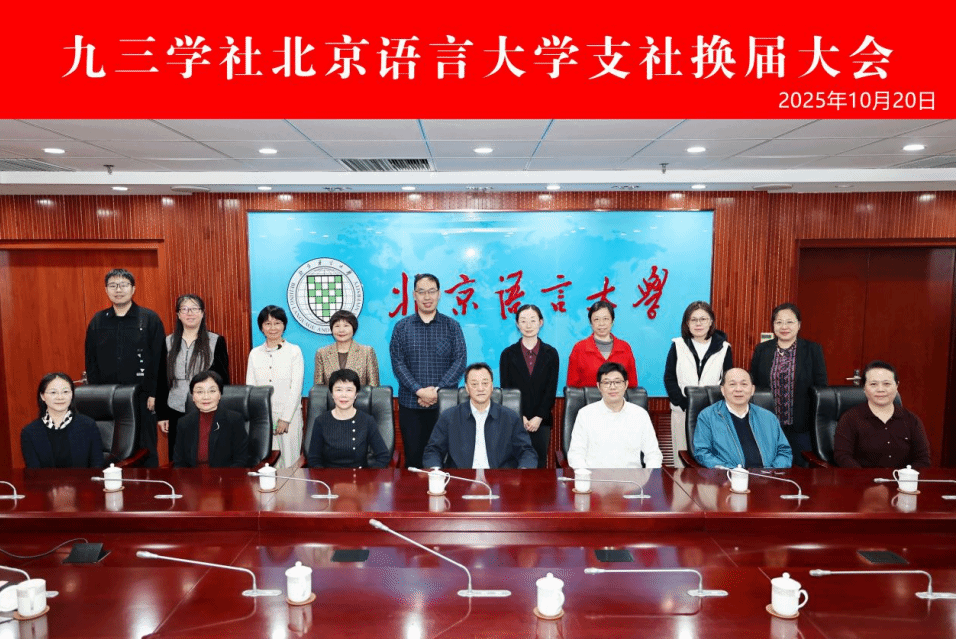 10月20日下午,九三学社北京语言大学支社换届大会在综合楼909举行。学校党委书记倪海东出席会议指导,九三学社海淀区委组织部副部长阮壮,九三学社海淀区委组织部委员徐文,北京语言大学党委常委、统战部部长吕静,九三学社北京语言大学支社第一届委员会主委张莉娜出席会议。