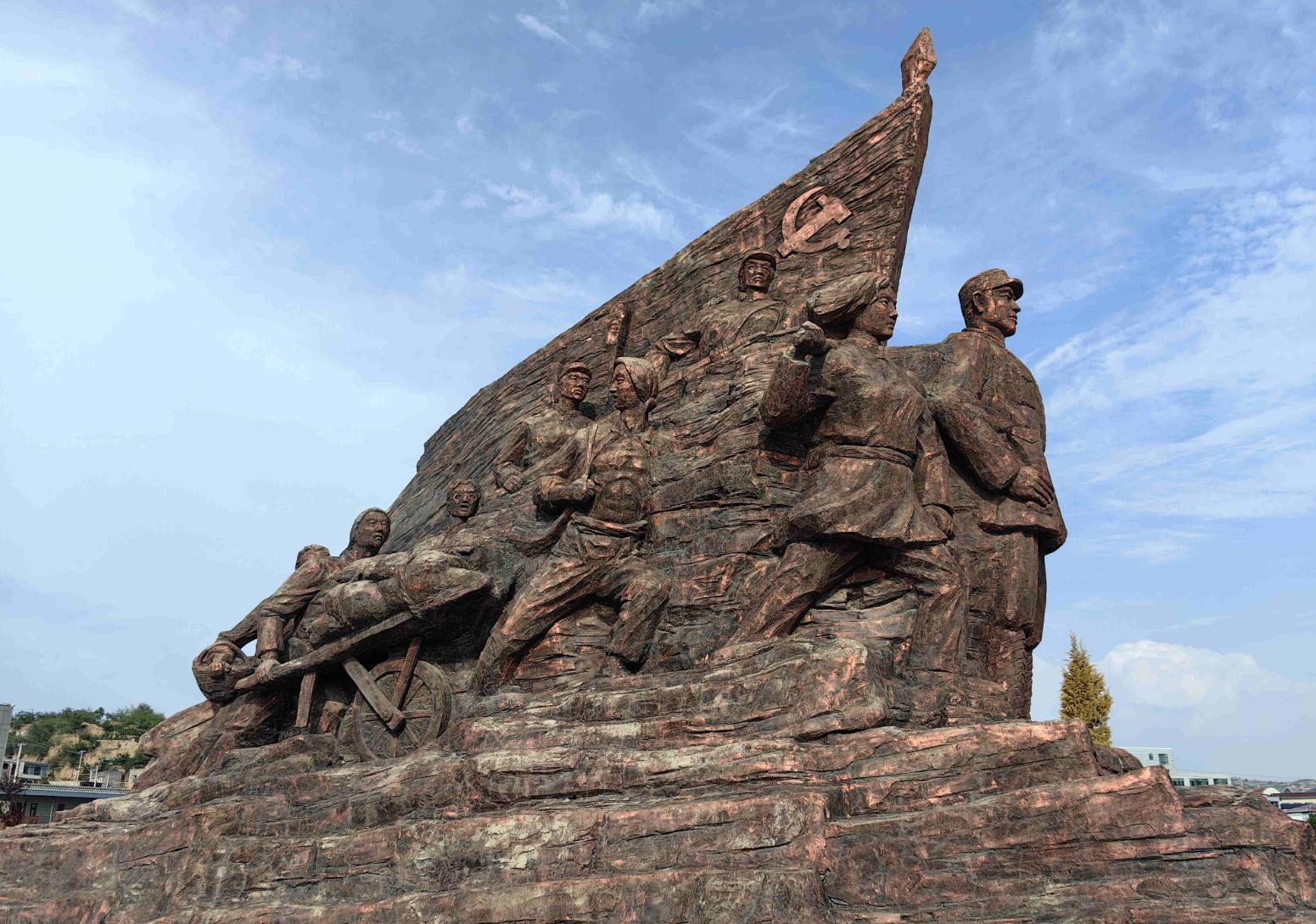 晋绥边区革命纪念馆广场前的军民抗战群雕